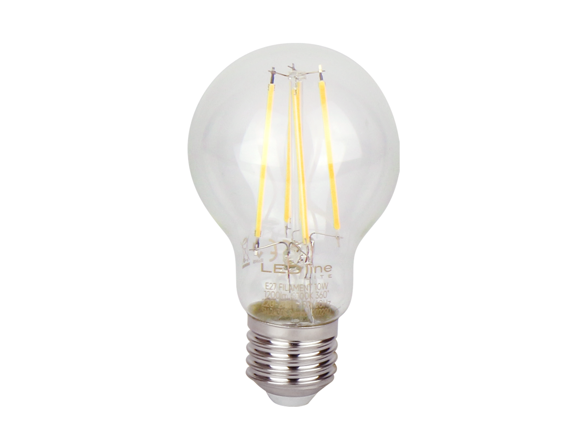 The LED Bulb E27 10W 2700K 1200lm FILAMENT A60 by LED line LITE represents a perfect blend of modern technology and timeless design. Featuring advanced Filament technology, this bulb mimics the classic aesthetics of traditional incandescent models while delivering superior efficiency. Its warm white light, with a color temperature of 2700K, creates a cozy and inviting ambiance, making it an excellent choice for both contemporary and vintage-inspired interiors.