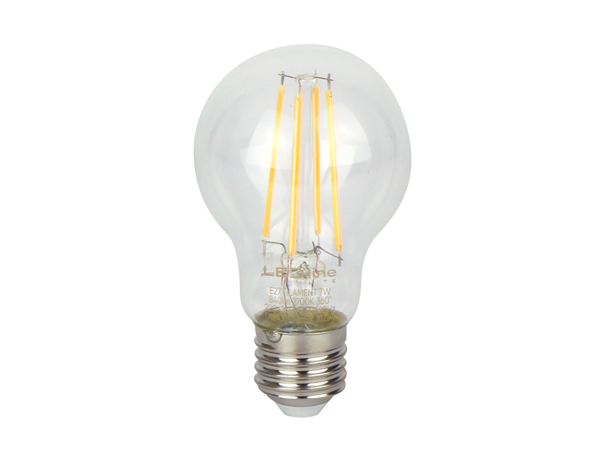 LED Bulb E27 2700K 7W 840lm 230V 360° FILAMENT A60 Glass LITE