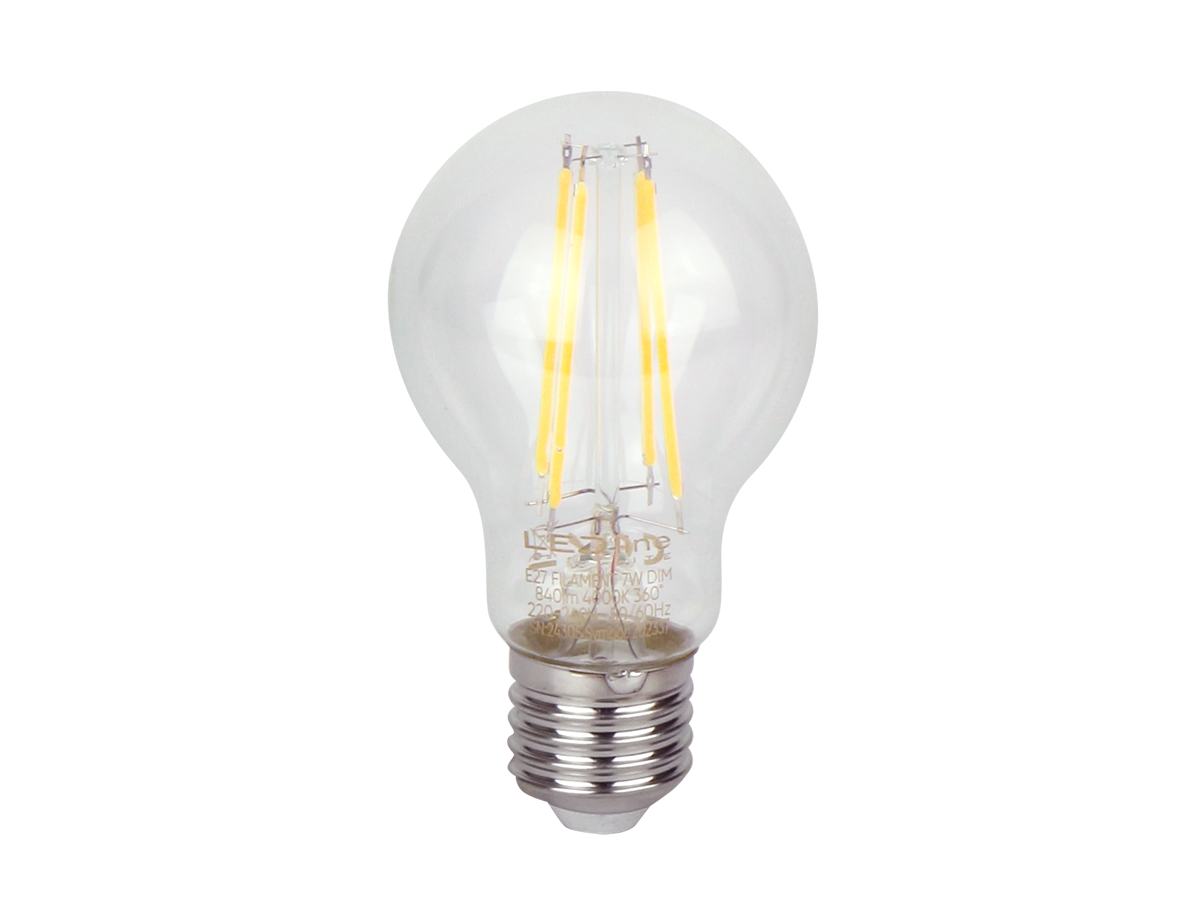 The LED Bulb E27 7W 4000K 840lm FILAMENT A60 DIM by LED line LITE combines cutting-edge technology with timeless design. Featuring an E27 base and a classic A60 globe shape, this bulb seamlessly fits into most standard light fixtures. It delivers an impressive luminous flux of 840 lumens using only 7 watts of power, resulting in an exceptional luminous efficacy of 120 lm/W.