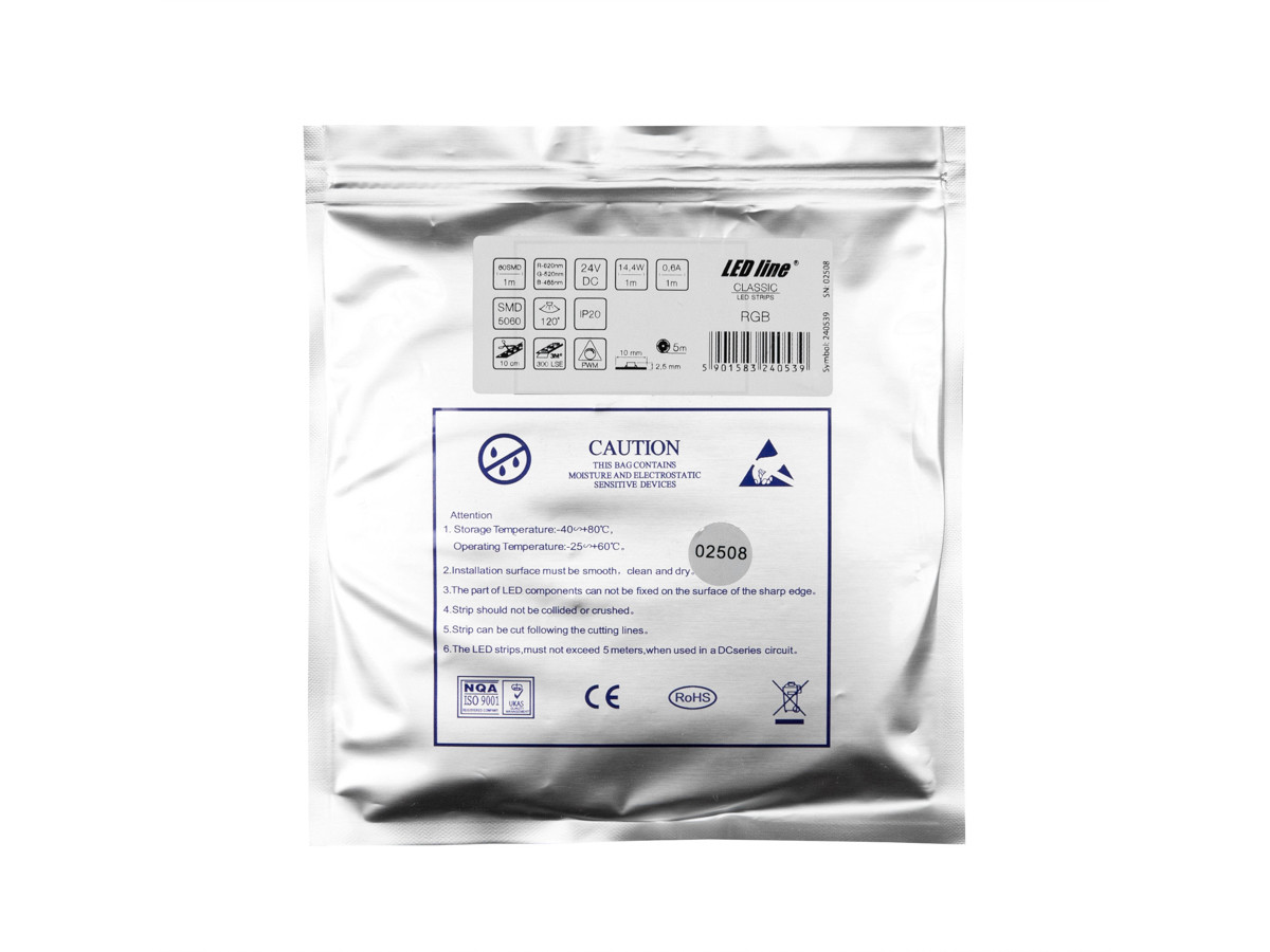 With the RGB color, you can adjust the light color to your preferences and create a unique atmosphere. The LED strip 300 SMD 24V RGB 14.4W is characterized by reliability and durability. Thanks to the use of SMD5050 diodes and high-quality materials, the strip is resistant to mechanical damage and ensures long-lasting use.