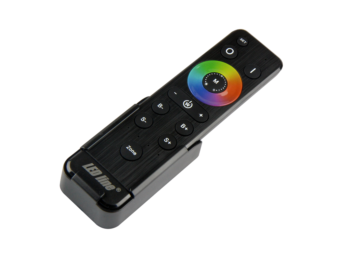 The remote has 8 programmed dynamic modes and 6 defined colors. Colors can also be selected touchingly through the adjustable RGB field. - Precise control